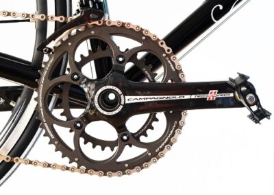 Obwohl die technische Entwicklung heute Rennräder ermöglicht, die elektronisch Schalten und hydraulisch gebremst werden und dabei teilweise noch deutlich unter sechs Kilo wiegen, erfreut sich das klassische Rennrad aus Stahl immernoch erstaunlicher Beliebtheit. Wir lieben beides, das klassische und das moderne. Sie bekommen bei uns daher beides, sehr gerne auch in einem Rad. Es spricht weder technisch noch optisch irgendetwas gegen einen Stahlrahmen mit moderner 11-fach-Schaltung und leichten Laufrädern. Sie werden erstaunt sein, was man aus einem klassischen „alten“ Rahmen so alles rausholen kann.